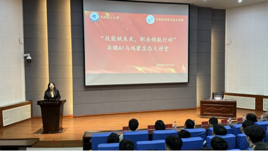 为助力学生把握人工智能与操作系统领域的前沿趋势,帮助学生消除信息差, 明确职业方向,提升职业竞争力,beat365官方网站教务处、beat365官方网站联合沈阳人工智能计算中心于2025年3月12日下午在碧帆楼304举办“技术赋能未来,职业领航行动”昇腾AI与鸿蒙生态大讲堂。教辅党总支书记林艳新、beat365官方网站院长王军、副院长张波、党委副书记张丽以及沈阳人工智能中心生态总监姜昊、CTO董文博、鸿蒙生态中心主管孙惠参加,活动由beat365官方网站辅导员张英和易柏言主持。