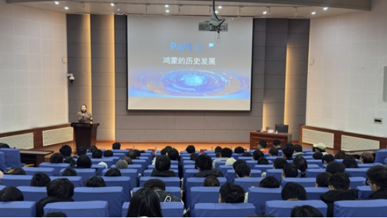 接着沈阳人工智能计算中心CTO董文博以《构建DeepSeek数字经济下的人才新生态》为题,剖析了AI算力优化、昇腾技术应用场景及未来就业方向,强调掌握核心技术能力是抢占行业先机的关键。随后,鸿蒙生态主管孙惠带来《鸿蒙千帆起航:如何抢占万物智联时代的开发者先机》,结合真实案例,详解鸿蒙开发技能与生态机遇,鼓励学生以技术为锚,提前布局职业赛道。最后鸿蒙生态总监姜昊强调就业需要掌控时代新科技,跟上社会发展的潮流。