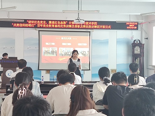 随后,王菲书记发表讲话,她全面介绍了党史基地建设成果。王菲指出,党史基地自建成以来,不断丰富展陈内容,创新讲解形式,充分发挥了党史学习教育和红色文化传播的重要作用,已成为学校师生开展党史学习教育的重要阵地。同时,王菲书记对讲解员们提出了殷切希望,希望优秀讲解员能够继续发挥榜样作用,精益求精,不断提升讲解水平;新讲解员要以优秀前辈为标杆,虚心学习,传承讲解团的优良传统,在未来的讲解工作中,用生动的语言、真挚的情感,把党史讲得更加精彩,让红色文化深入人心。