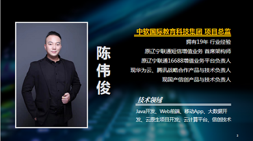 陈伟俊:现任中软国际教育科技集团项目总监,华为云、腾讯战略合作和国产信创产品与技术负责人,拥有19年IT行业从业经验。