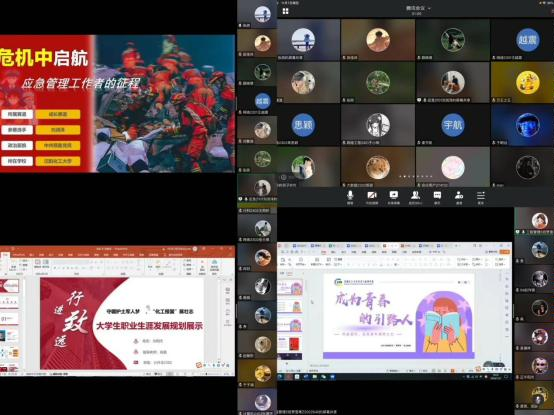 11月7日晚,学院在腾讯会议平台举办职业规划大赛经验分享会,邀请首届全国大学生职业规划大赛获奖学生代表和指导教师分别就成长赛道和就业赛道分享参赛经验和心得。学院党委副书记张丽、各年级辅导员以及200余名学生参会。辅导员张鸽主持会议。